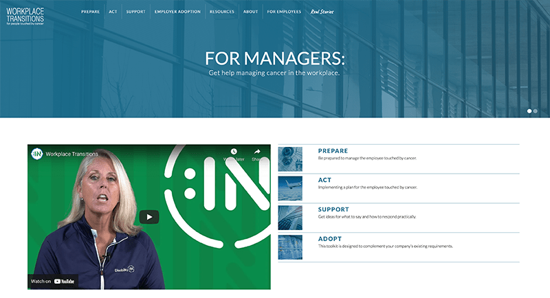 This website was created to advance disability inclusion in the workplace. It provides managers with guidance on how to manage return-to-work for employees diagnosed with cancer from a practical, psychosocial, and legal perspective. It also supports employees with a cancer diagnosis or caregiving for a loved one with cancer by providing information needed to balance work and cancer.
